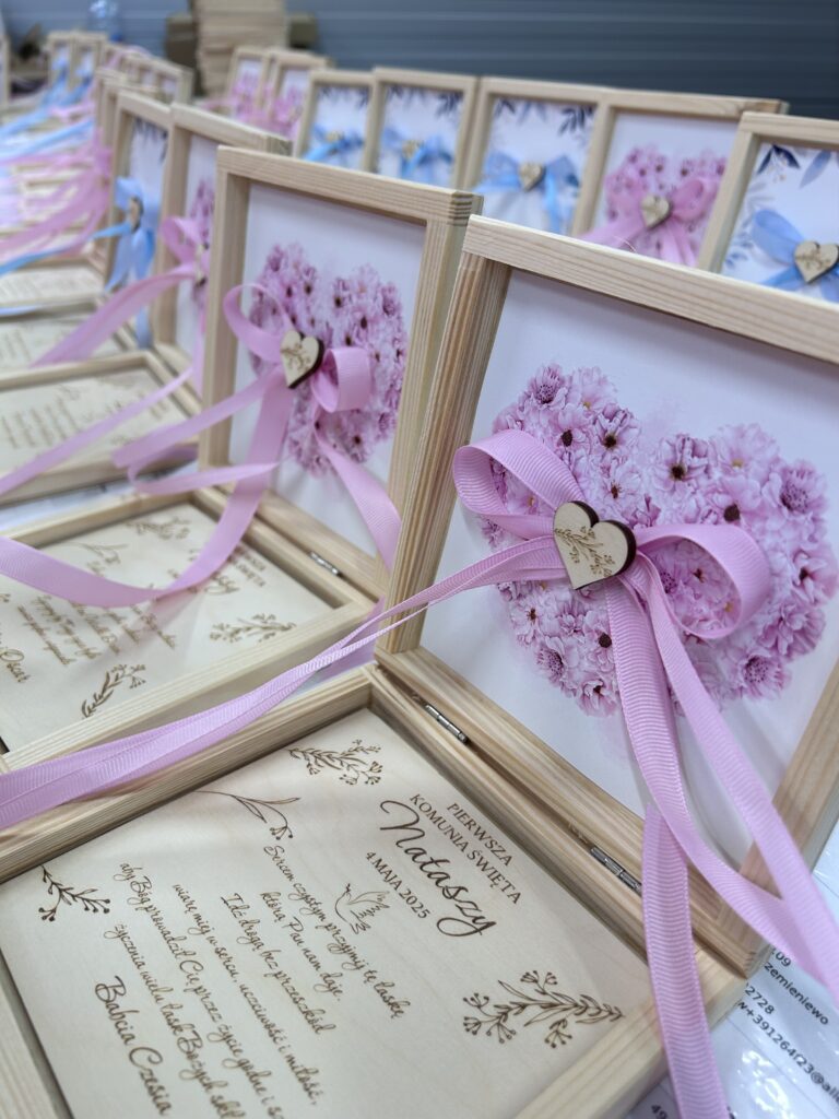 Naszą misją jest tworzenie wyjątkowych produktów, które łączą tradycję z nowoczesnym podejściem do estetyki. Specjalizujemy się w projektowaniu zaproszeń, pamiątek oraz ozdób na wyjątkowe okazje, takich jak Chrzest i Komunia Święta wykorzystując ekologiczne materiały, takie jak sklejka i drewno.