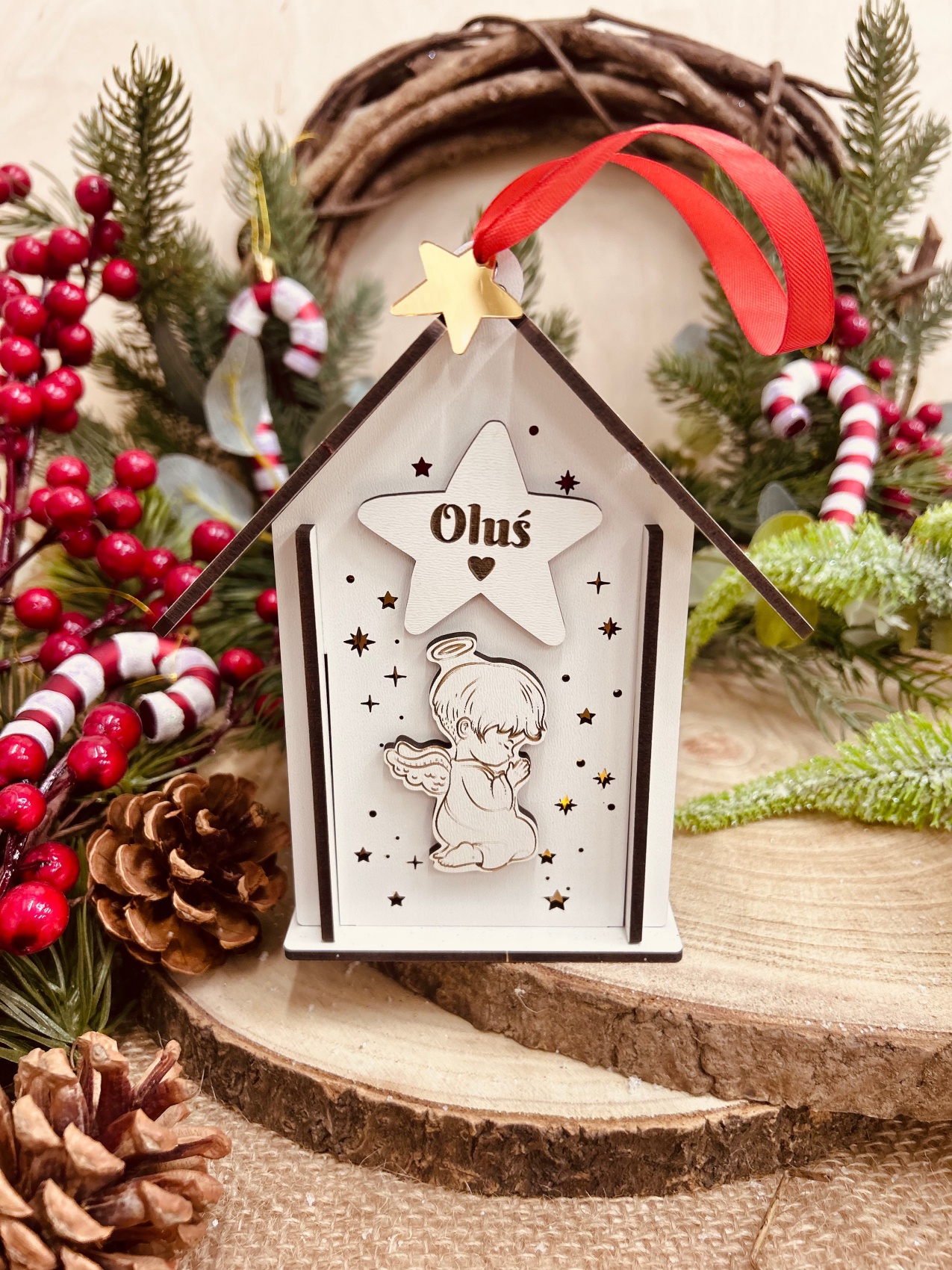 Lampion na Roraty z Imieniem to wyjątkowa dekoracja adwentowa, która doda ciepła i magii do każdego domu w okresie świątecznym. Wykonany jest z drewna co łączy w sobie elegancję i funkcjonalność. Jego wyjątkowy design przyciąga wzrok, a jednocześnie wprowadza do wnętrza przytulny nastrój, idealny na czas adwentu i oczekiwania na Święta Bożego Narodzenia.