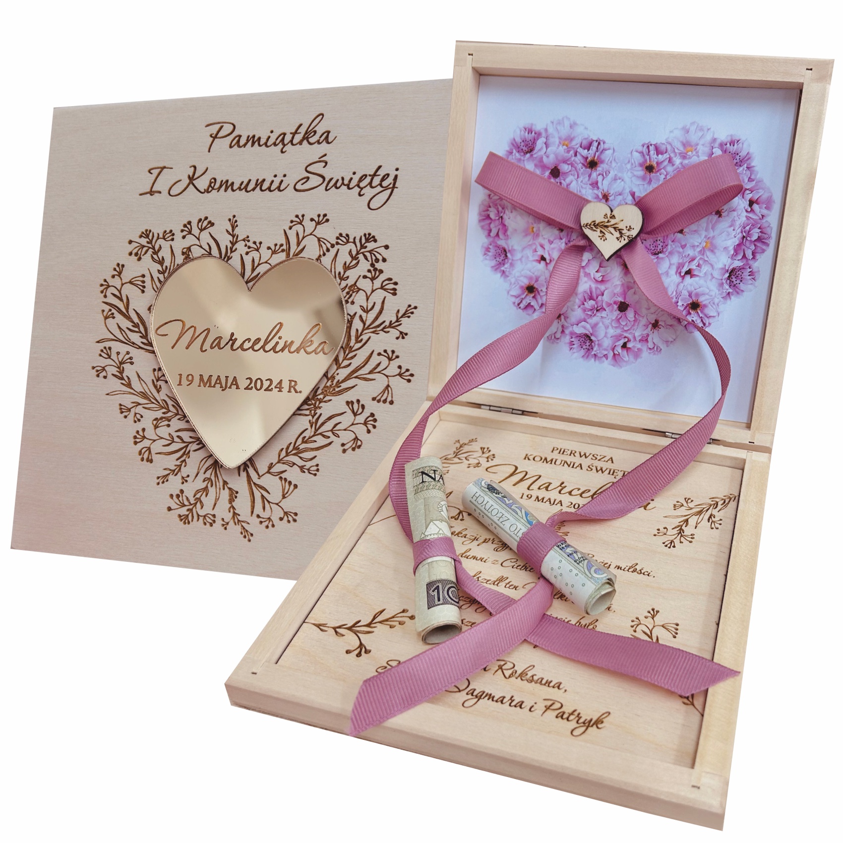 Pudełko drewniane na komunię dla DZIEWCZYNKI